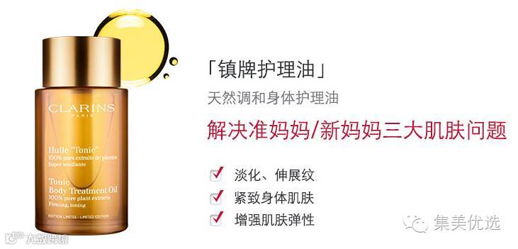 推荐理由:娇韵诗作为法国高端护肤品牌,一直以来都悉心倾听女性的真正需求,研发出切实有效、优质天然的护肤品。此款天然调和身体护理油以榛果油作为基础油,混合了天竺葵等高浓缩的植物精油,内含丰富的维他命A和E,能起到紧致肌肤、增强弹性和韧性的功效。特别适合准妈妈,能有效预防和淡化伸展纹,使肤色均匀、柔软顺滑。