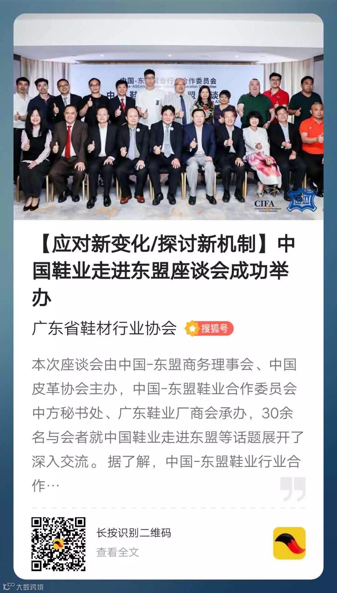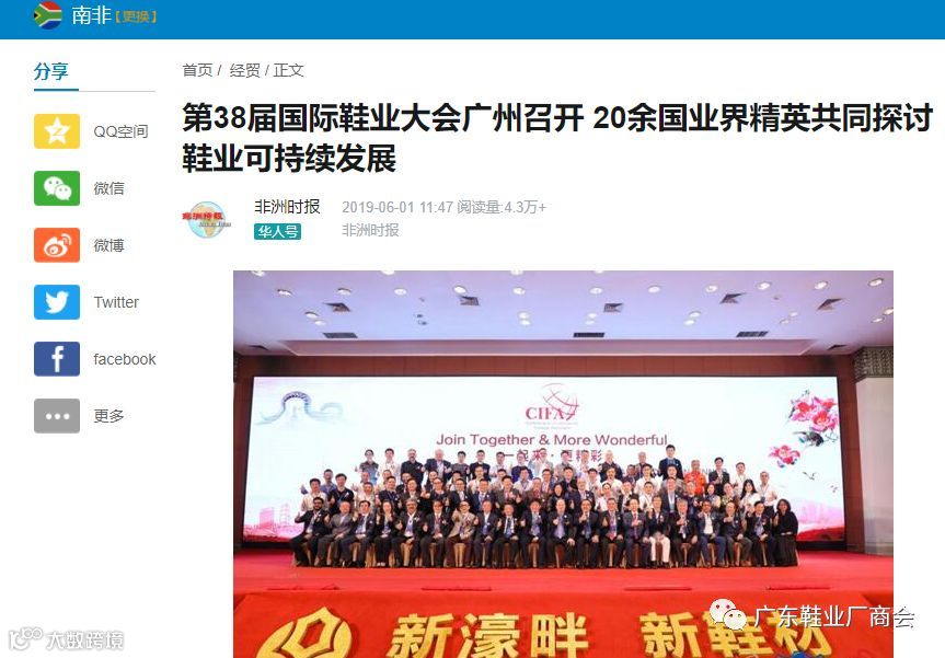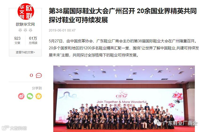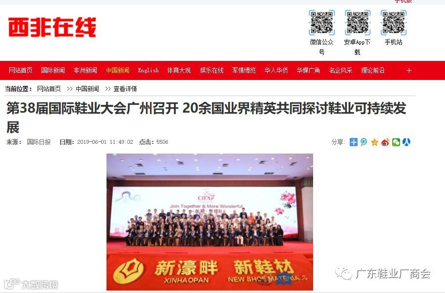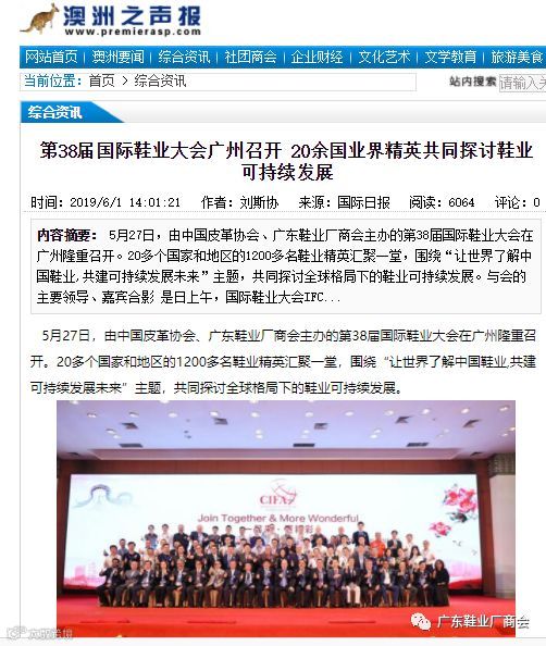由中国皮革协会和广东鞋业厂商会联合主办的第38届国际鞋业大会已圆满落幕,本次大会有来自亚洲、欧洲、美洲等二十多个国家和地区的鞋业商协会、产学研机构等相关组织和鞋业界同行共同参与此次盛会,对大会予以高度肯定和赞许,表示此次大会影响很大,盛况空前,对广东鞋业的整体实力及大会均留下了深刻的印象!