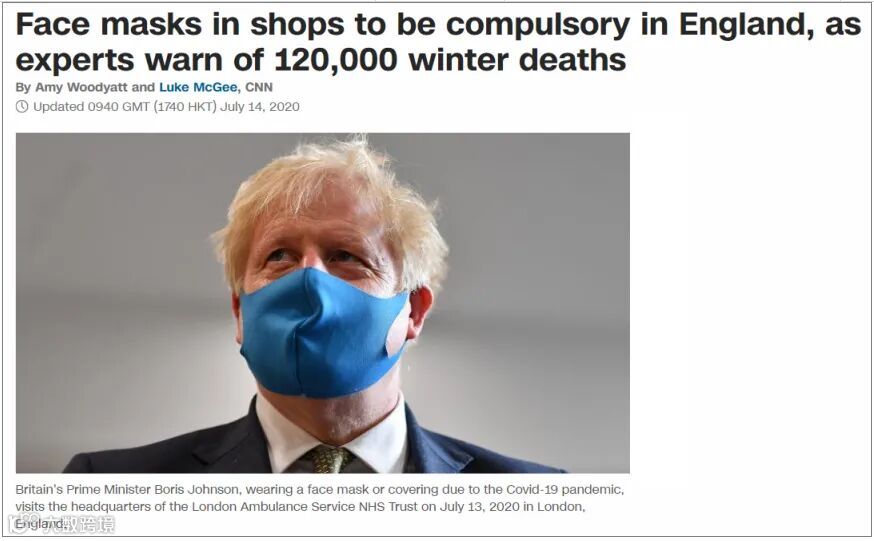 关于戴口罩,英国终于出了强制规定。从7月24日起,在英格兰的商店和超市内必须戴口罩,未遵守新规的人将面临高达100磅的罚款。