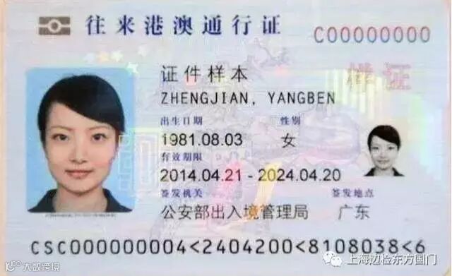 往来港澳通行证样本