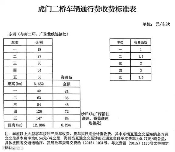 虎门二桥收费标准