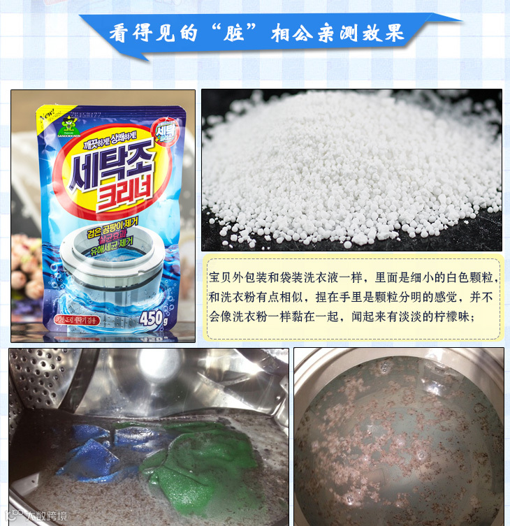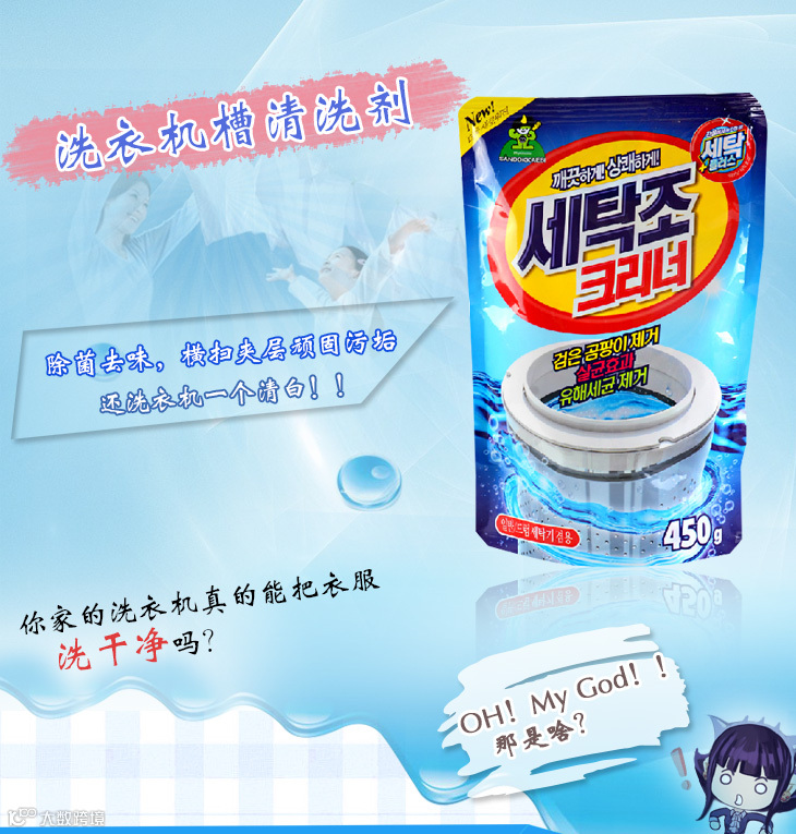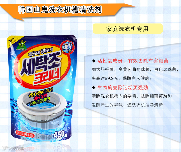 韩国山鬼洗衣机清洁剂,除菌去垢,功效达99.9%,获韩国国家级杀菌效果认证标识!