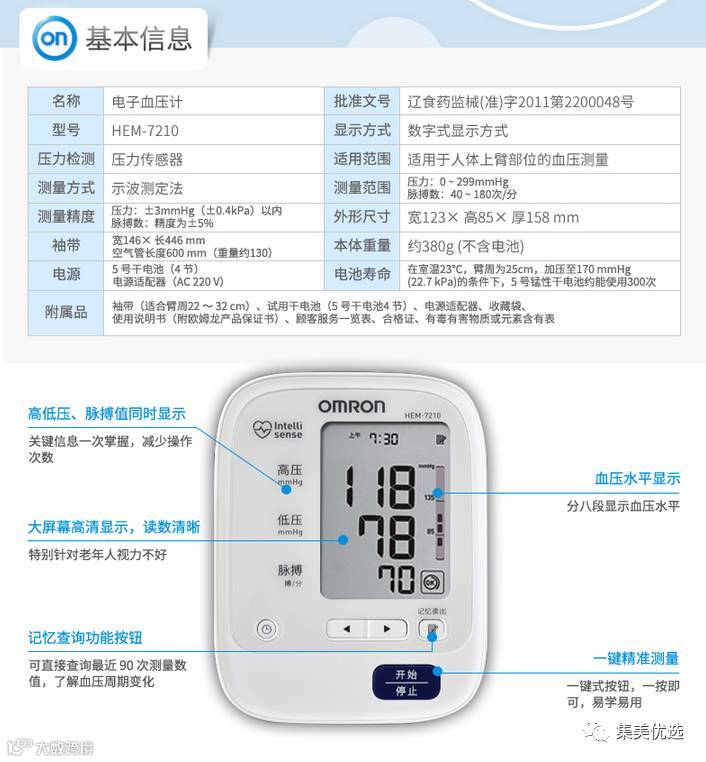 欧姆龙电子血压计HEM-7210全自动智能上臂式家用血压测试仪器