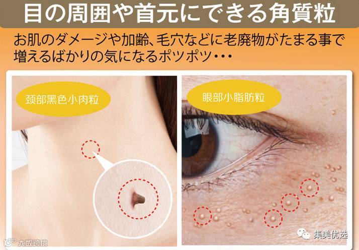 功效:专门针对眼睛周围、脖子以及身体其他部位的脂肪粒、小肉粒,特别是由于角质层堆积造成的白色脂肪粒