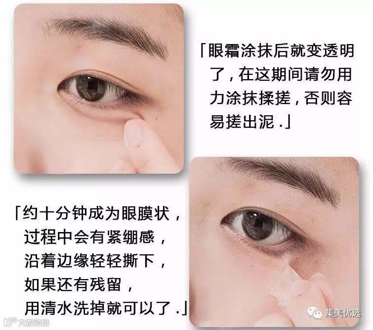 洁面后擦干水分,取适量本品于指端,轻轻涂抹于脂肪粒或小肉粒部位,适当按摩加速吸收。等眼膜干掉后(约10分钟左右),轻轻撕下或者冲洗干净即可。建议一周三次,隔天使用。
