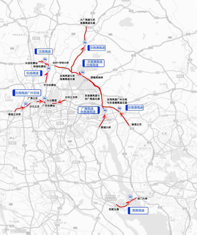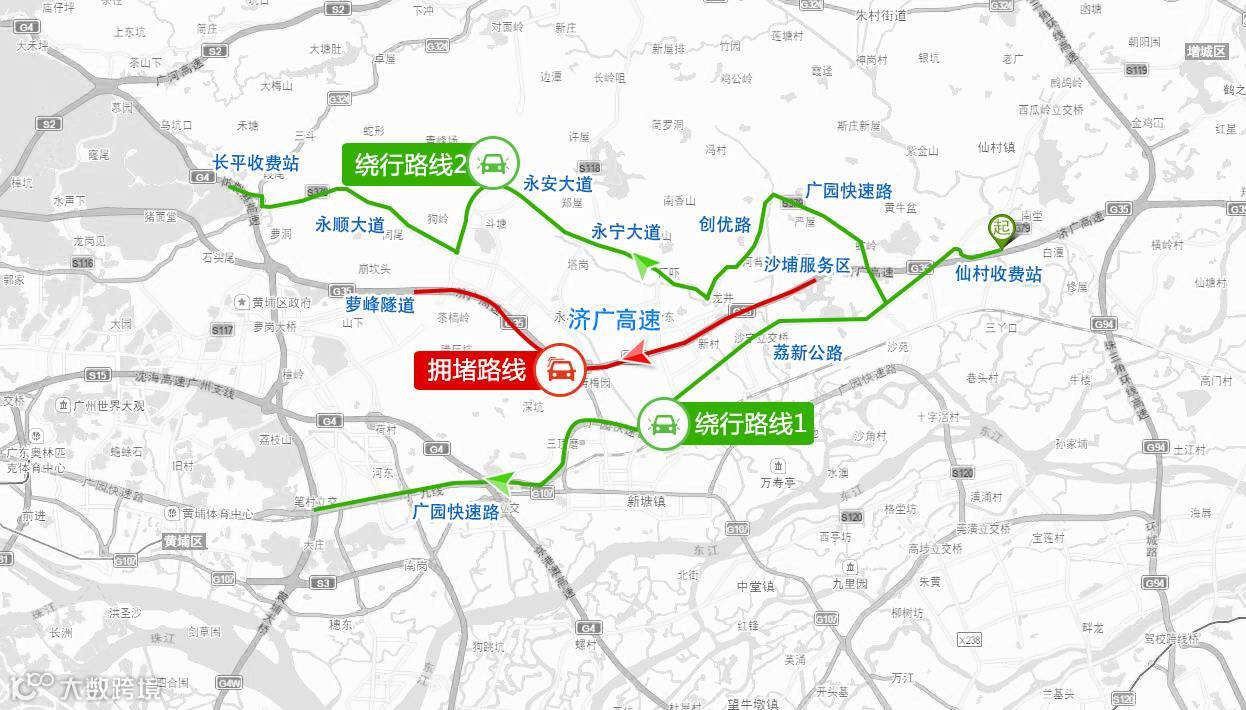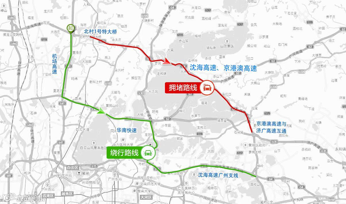 结合广州市各条高快速路运行情况,市交委为市民优选以下自驾车出行路线: