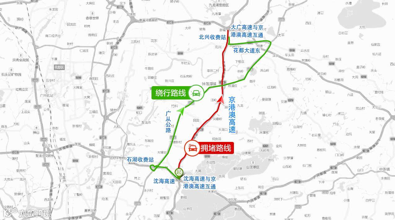 预计前往深圳、东莞、佛山、肇庆方向的自驾车出行将给北环高速带来车流高峰。