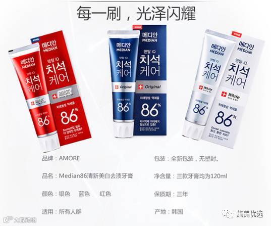 韩国爱茉莉麦迪安86% 美白去渍牙膏120g*2支 颜色随机