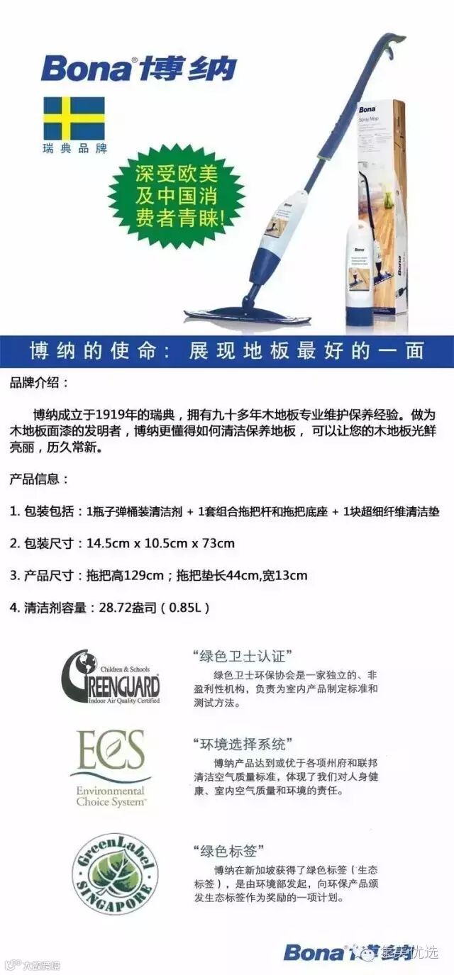 博纳BONA高档喷水喷雾平板拖把,风靡欧美的懒人拖把。一喷一拖,不用弯腰,地面清洁问题轻松搞定!