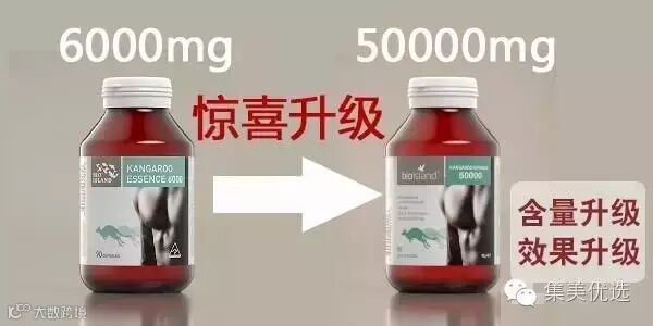 产品成分:采用超低低温生化提炼工艺精制而成,袋鼠精华每粒胶囊含精制袋鼠精华50000毫克,为同类产品中最高。