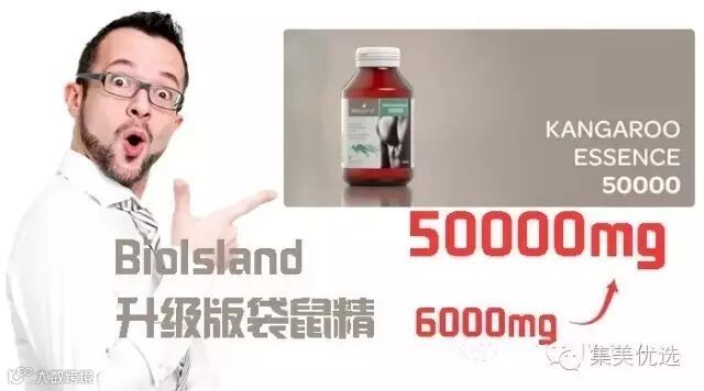 史上最高浓度的袋鼠精,BioIsland袋鼠精50000mg浓缩精华,一粒更比8粒强!