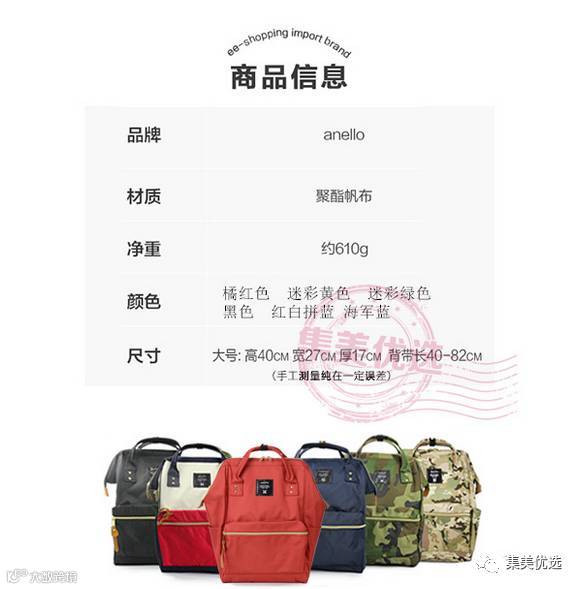 日本anello双肩包男女背包 妈咪学生书包帆布电脑旅行包