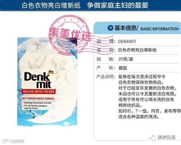 德国DENKMIT白色衣物亮白增新纸