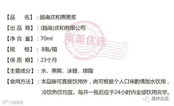 越南庆和燕窝浆 低糖燕窝 即食滋补精品 70ml/瓶*8瓶