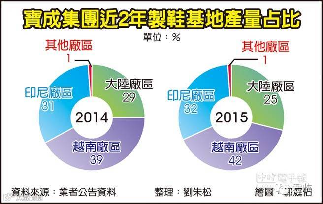 现在的宝成,有员工41万人,分布在中国、越南、印尼三大厂区。就产量份额来说,2015年中国的比例已经是三大厂区中最小的一块了,只剩下越南的一半左右。