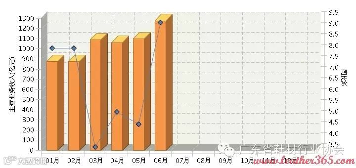 2015年1~6月,全国皮革行业累计完成主营业务收入同比增长6.47%。其中:6月份完成主营业务收入同比增长9.32%。(参见图1)。