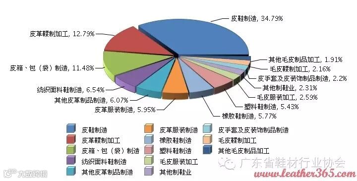图2 2015年1~6月全国皮革行业累计主营业务收入行业小类占比情况