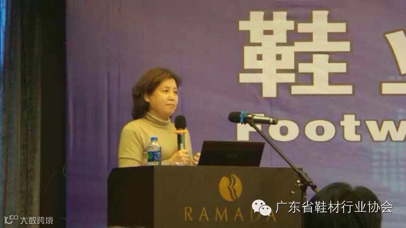 ▲广东鞋业厂商会秘书长——杨霞 演讲“广东制鞋与鞋材行业发展现状及思考”