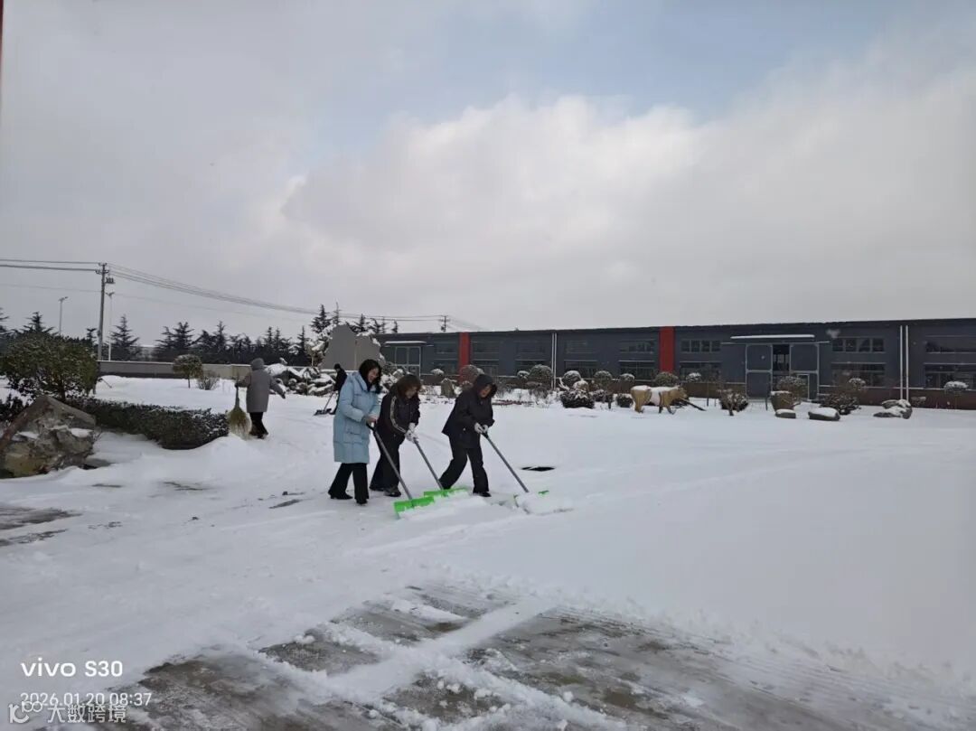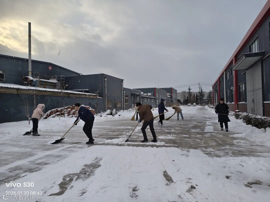 经过一个多小时的奋战,厂区主干道、办公楼前的积雪被彻底清理干净,为大家的出行筑牢了安全防线。