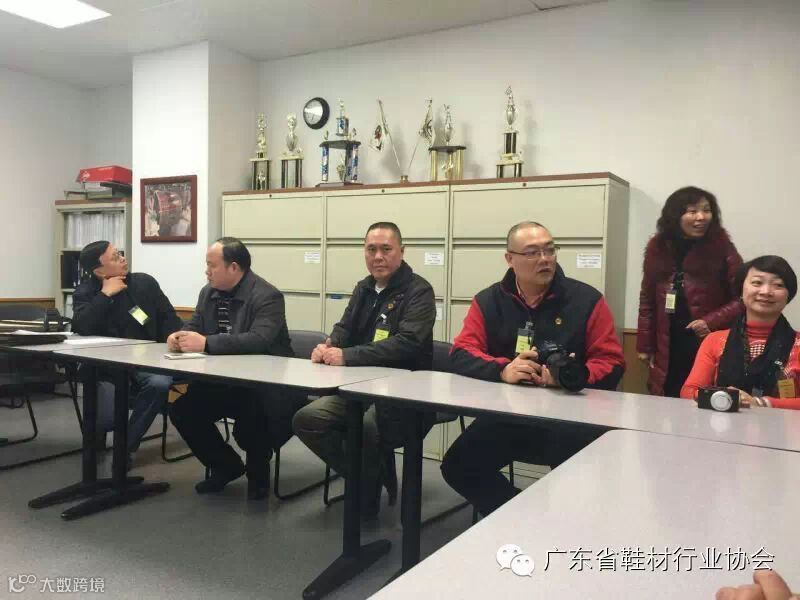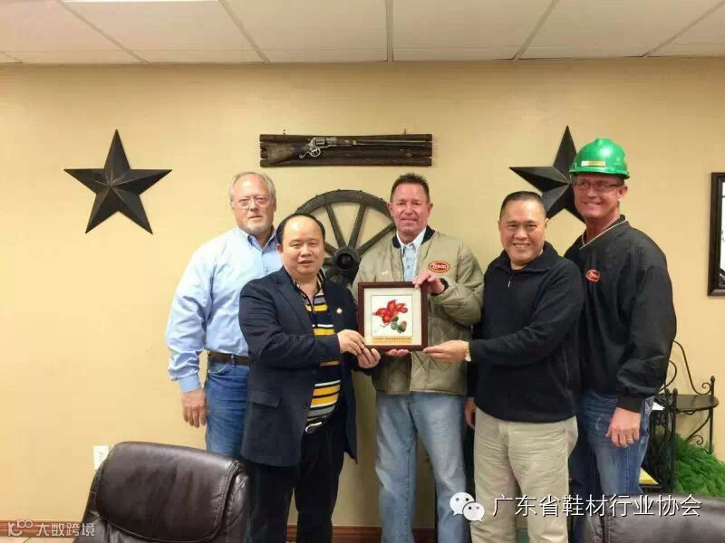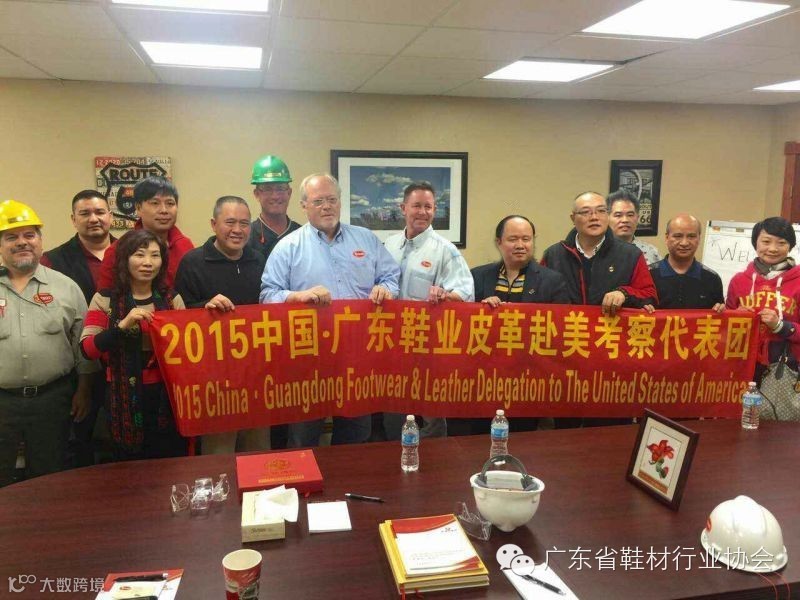 当地时间1月9日,由广东鞋业厂商会会长、广东省鞋材行业协会主席、广东新濠畔集团有限公司董事长刘穗龙先生,广东省鞋材行业协会会长叶志成先生,广州市越秀区皮革五金鞋业商会会长邝卫宇先生,陈燕雯、王羽刚、林宝珠、池后文、何保华等一行8人组成考察团,考察了阿马里洛的JBS皮革厂、泰森皮革厂Tyson Plant、洛杉矶Harland M Braun Co,受到三间公司的热烈欢迎和热情接待。考察旨在了解美国皮革行业发展新趋势,寻找行业发展新商机;同时也向美国朋友介绍中国特别是广东的鞋业、皮革行业现状及发展前景,促进了两国在鞋业、皮革方面的合作交流,为扩大两国的贸易往来搭建平台。
