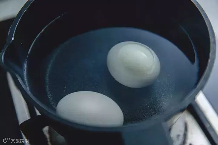 锅中盛冷水后放少许盐,开火煮咸鸭蛋,水沸腾后5分钟左右捞出。