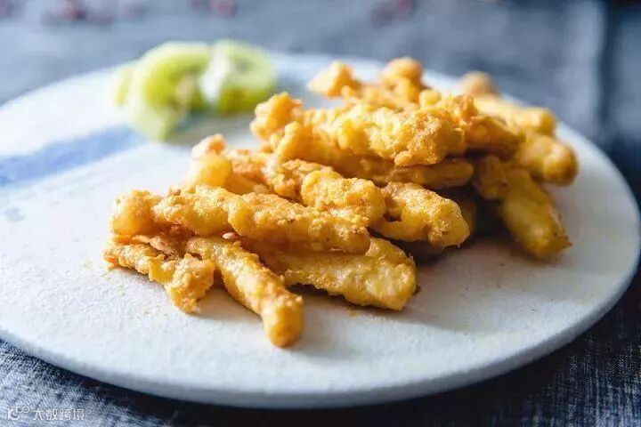 » 加清水时保持同一方向轻轻搅拌,过度用力会让面糊筋力太强,难以挂糊;面糊的稠度也要控制好,不要太稀。