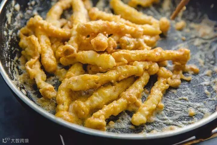 口感非常撩人:外面咸香而里面是咯吱咯吱的嚼劲,让人忍不住一根、一根又一根~