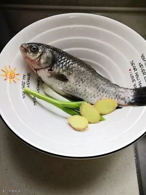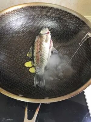 3:热锅冷油,锅尽量热一点煎一下生姜,再下鲫鱼,煎至两面金黄,加开水