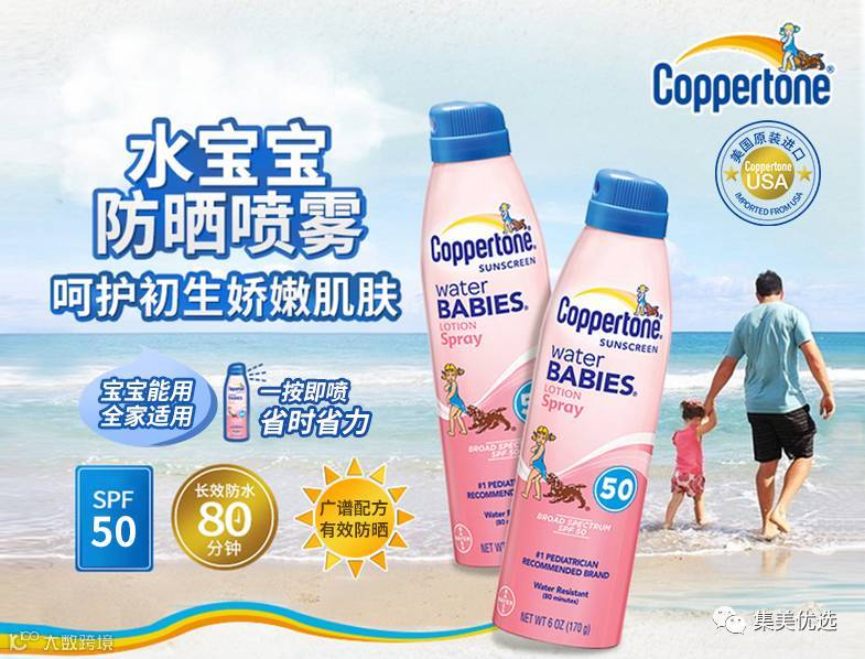 美国Coppertone水宝宝婴幼儿防晒喷雾SPF50+(170g)