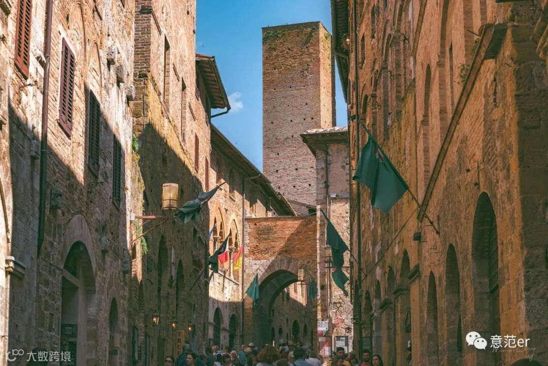 圣吉米尼亚诺的古塔不仅代表着所有者的财富,更是其家族权力的象征。高塔往往意味着家族的显赫地位。因此,对于塔高的追求曾是中世纪家族冲突的来源,家族纷争也将市民分为不同派别。来自世仇家族的青年相爱是中世纪故事的经典桥段,爱人们会偷偷在塔下见面,互诉衷肠,正如现实版的罗密欧与朱丽叶。