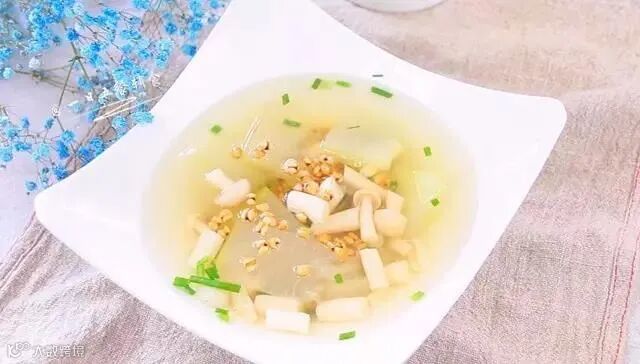 美丽的陪伴,健康的生活,必须就是零添加的“海鲜菇冬瓜薏米汤”。