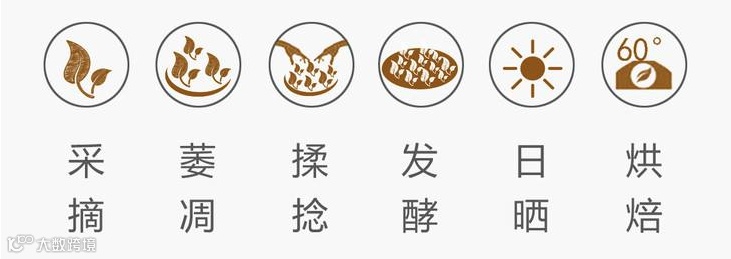 鲜叶-萎凋-揉捻-发酵(将揉捻叶放在发酵框或发酵车里,进入发酵室发酵,请注意这里的发酵是90%-100%的几乎全发酵)-塑形-烘干(焙干)-挑拣-包装-成品