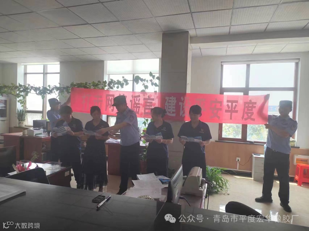 为深入推进“净网2024”和打击整治网络谣言专项行动,进一步提升广大群众对网上虚假信息的鉴别、识别能力,降低网络谣言给群众生产生活造成的不良影响,日前,平度市公安局网警大队联合崔家集派出所深入辖区企业青岛市平度宏华橡胶厂开展打击整治网络谣言宣传活动。