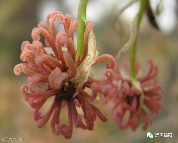 落叶乔木,高达30米,胸径最大可达1米,树皮灰褐色,叶薄革质,雄性短穗状花序常多个排成总状,雄蕊多数,花丝不等长,花药比花丝略短。雌性头状花序有花24-43朵,花序柄长3-6厘米,偶有皮孔,无腺体;萼齿4-7个,针形,长4-8毫米,子房下半部藏在头状花序轴内,上半部游离,有柔毛,花柱长6-10毫米,先端常卷曲。头状果序圆球形,木质,直径3-4厘米;蒴果下半部藏于花序轴内,有宿存花柱及针刺状萼齿。种子多数,褐色,多角形或有窄翅。