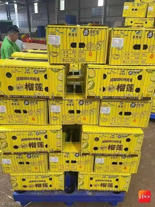 自今年5月28日首趟榴莲专列抵港以来,短短半年多时间,成都国际铁路港东南亚水果(榴莲)集散中心已分拨发出超过7500吨、价值逾2亿元的进口鲜榴莲,以及超千吨的龙眼、山竹、椰青等东南亚水果。