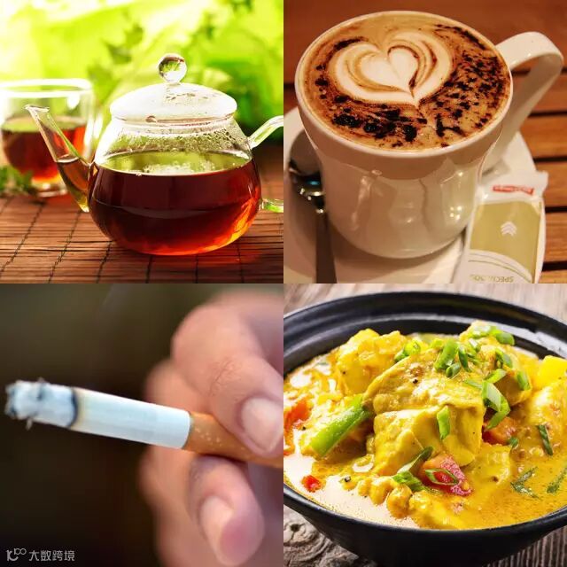 这一点简直对吃货太不友好!除了常见的常见的茶、咖啡、香烟以外,其实咖喱才是杀伤力最大的。黄咖喱中的姜黄最致命,红咖喱好那么一丢丢,比较友好的是绿咖喱。所以要吃的还是要白牙,就看你们了。