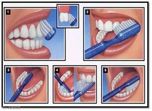 把牙刷45度角放在牙齿和牙龈的位置(牙菌斑最爱长),2-3颗牙为一组,以轻轻颤动的方式去刷牙,内外侧都要这样,刷到门牙就把牙刷竖起来,最后刷咬合面