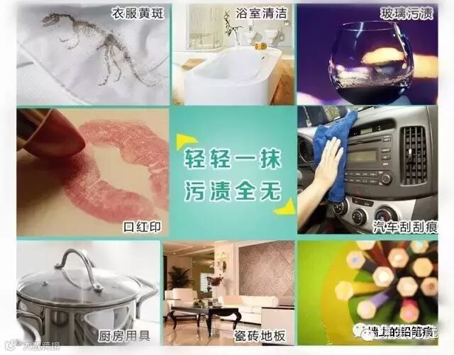 【产品适用于】:厨房碗具、浴室清洁、瓷砖地板、卫浴设备、玻璃、衣服黄斑、口红、墙上铅笔痕迹、汽车刮痕等。