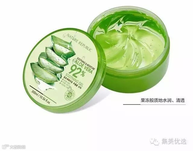 韩国当红的“国民面霜”来咯,它可是平民界的补水神器哦,它可以是你的补水面膜、保湿面霜、润泽身体乳……真正的一瓶胜多瓶。高达92%的芦荟成分超补水,是普通面霜含水量的6倍哦!300ml一罐超实在, 在这个炎热的夏季,人人手上都要准备一瓶“万能胶”那就是这款自然乐园芦荟胶啦!
