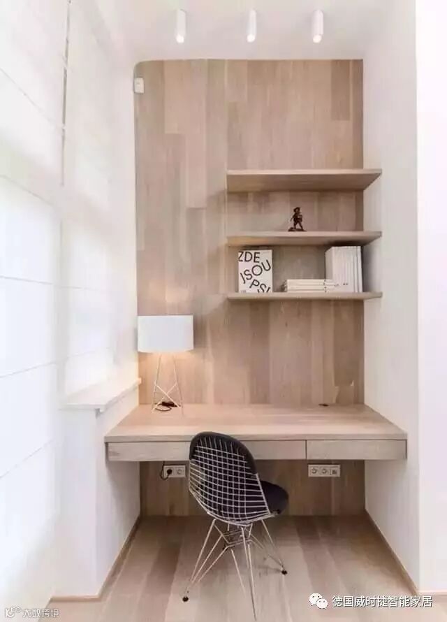 4、对于房间比较少的户型,空间有限,没有书房,如果考虑把阳台改造成一个小书房也是不错的选择,光线好不说,通常也不会打扰家人,更容易成为一个独立空间。阳台就能实现自己的书房梦。