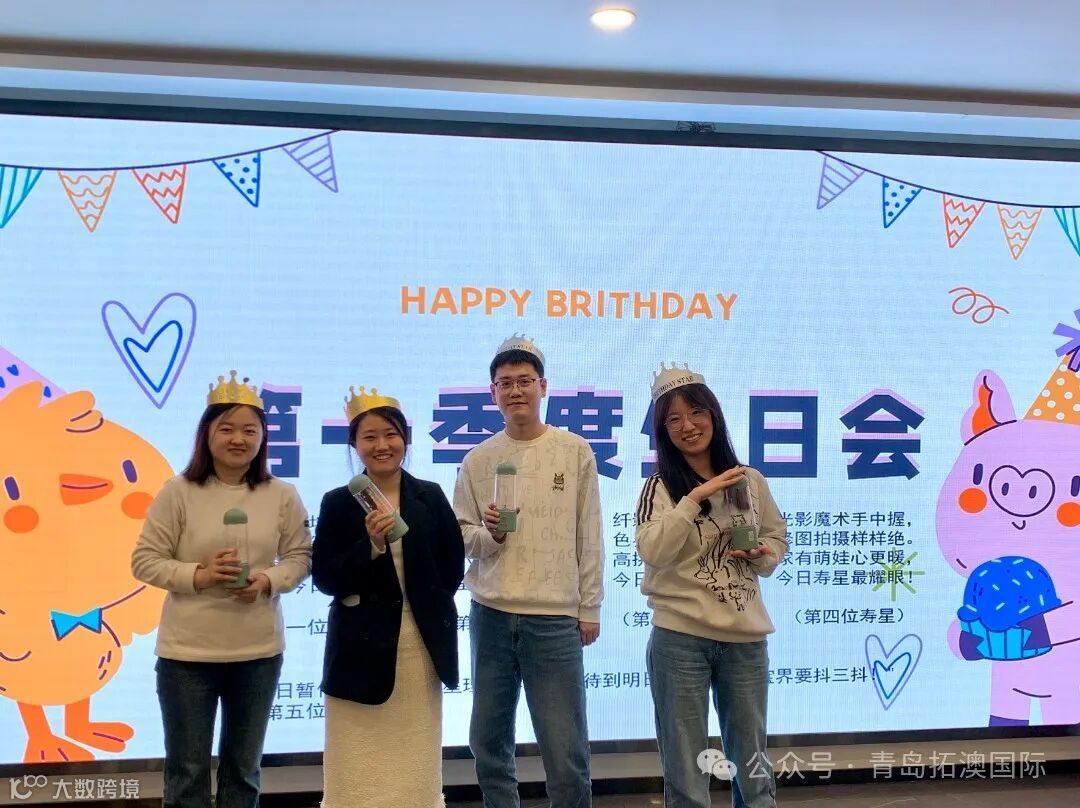 最后,大家一同唱响生日歌,在悠扬的歌声中,寿星们闭上眼睛,许下了美好的心愿。灯光映照在他们满是笑容的脸上,这一刻,所有的疲惫与烦恼都烟消云散。当生日蜡烛被吹灭,全场爆发出热烈的掌声,这掌声不仅是对寿星们新一岁的祝贺,更是对公司美好未来的期许。