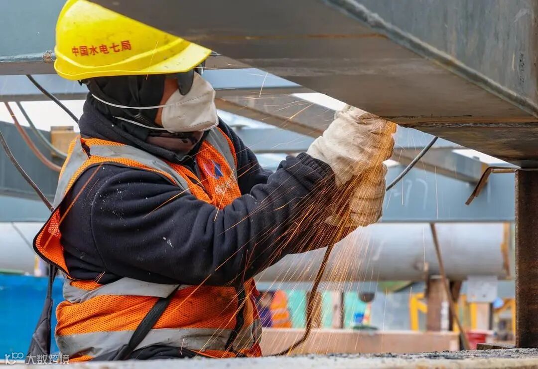 建设现场塔吊林立焊花飞溅