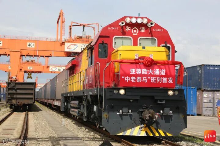 4月30日,全国首列“中老泰马”全铁快速货运列车在成都国际铁路港发车