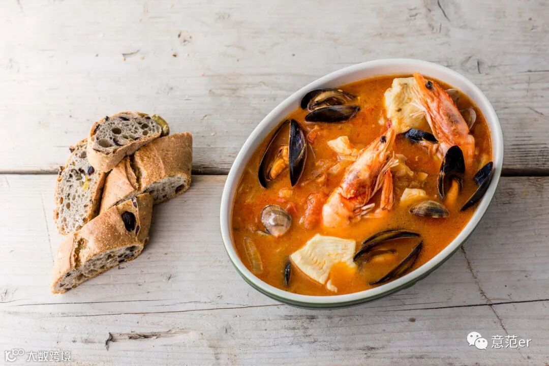 Brodetto di San Benedetto del Tronto (用13种不同的鱼和贝壳类烹制的加了香料的鱼汤,配青椒、胡椒和辣椒)