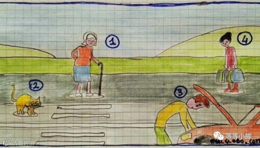 以下插图里有几个人物,一位要过马路的老奶奶,一只在马路当中有被汽车压扁危险的小猫咪,一个因为汽车抛锚而绝望的司机,还有一个满手都是购物袋,行走困难的女士。测试的问题很简单:你将会第一个帮助谁呢?每个选择都将揭示你属于哪种利他主义。