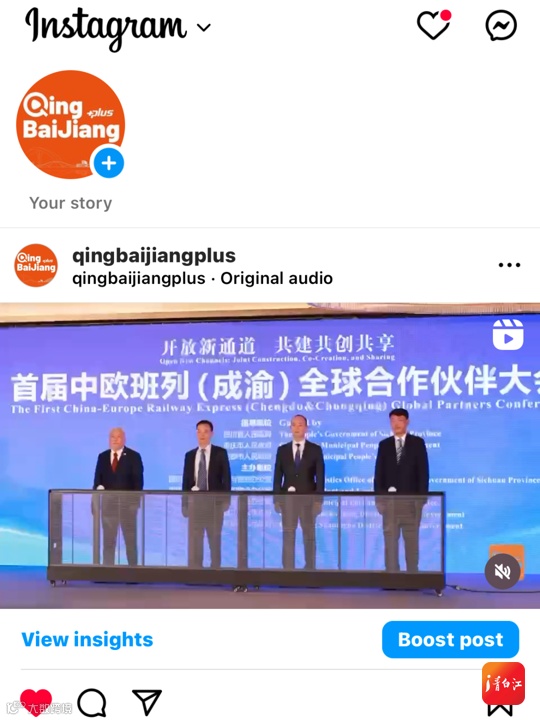 一方面,突出陆港枢纽品牌,在全省区(市)县中率先打造英文短视频栏目“Qingbaijiang Plus”,并在X、Facebook、Instagram、YouTube和TikTok五大海外社交平台开设账号,透过国际班列这一窗口,面向“一带一路”共建国家生动讲述中国故事,让世界更直观地感知成都发展的澎湃动能。
