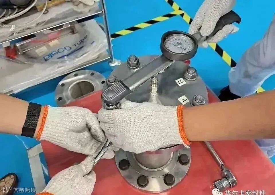 ◆在涂抹了密封膏的情况下,垫片与法兰面的摩擦力减小了,如果紧固力不均匀或紧固力过大,垫片就容易在法兰面上发生滑动而异常变形、破损,特别是无石棉垫片、PTFE包覆垫片,无内环的缠绕垫片,一定要薄且均匀涂抹密封膏,并按照安装规范均匀紧固。