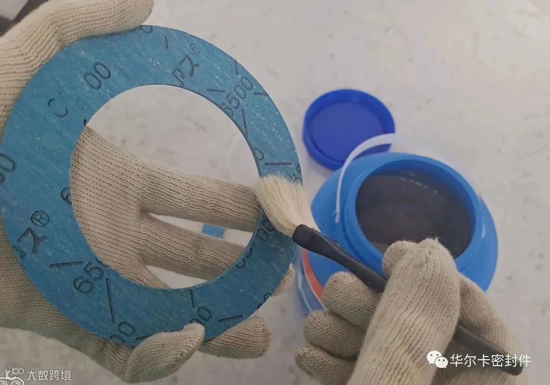 ◆如果是在室内生产线上对批量垫片涂抹密封膏,建议准备一个不锈钢台面,将垫片置于平面上,用刷子在两面涂抹,如果是在安装现场涂抹少量垫片,建议准备一张干净的塑料纸,同时佩戴干净的手套涂抹,防止垫片涂抹了密封膏以后,粘上灰尘等颗粒物;
