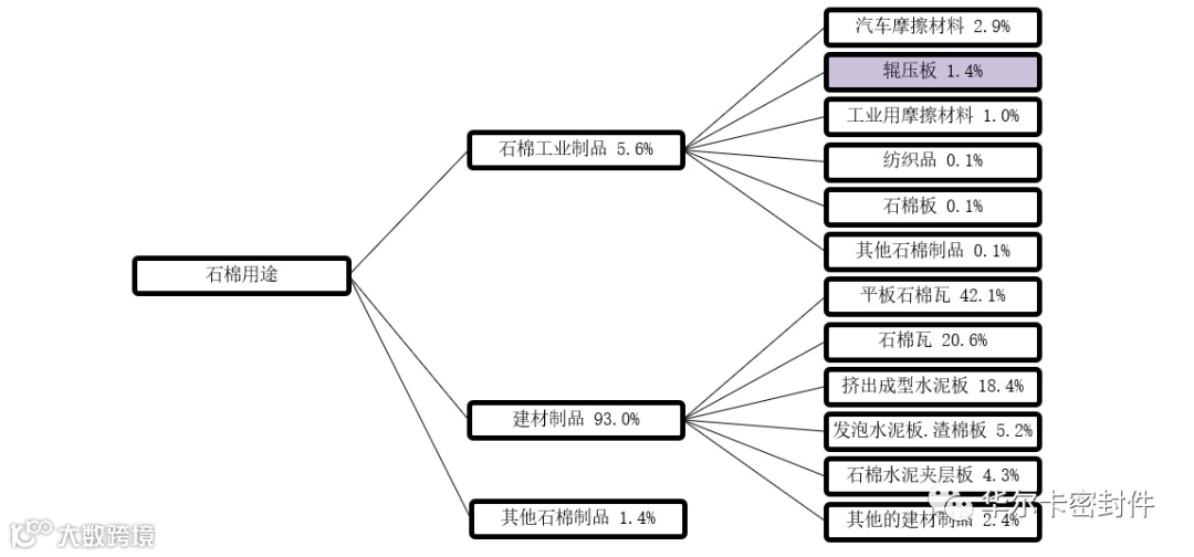 在日本,石棉的主要用途集中在建材方面,以日本石棉协会在1997年5月的调查为例,作为密封材料使用量大约不到2%。