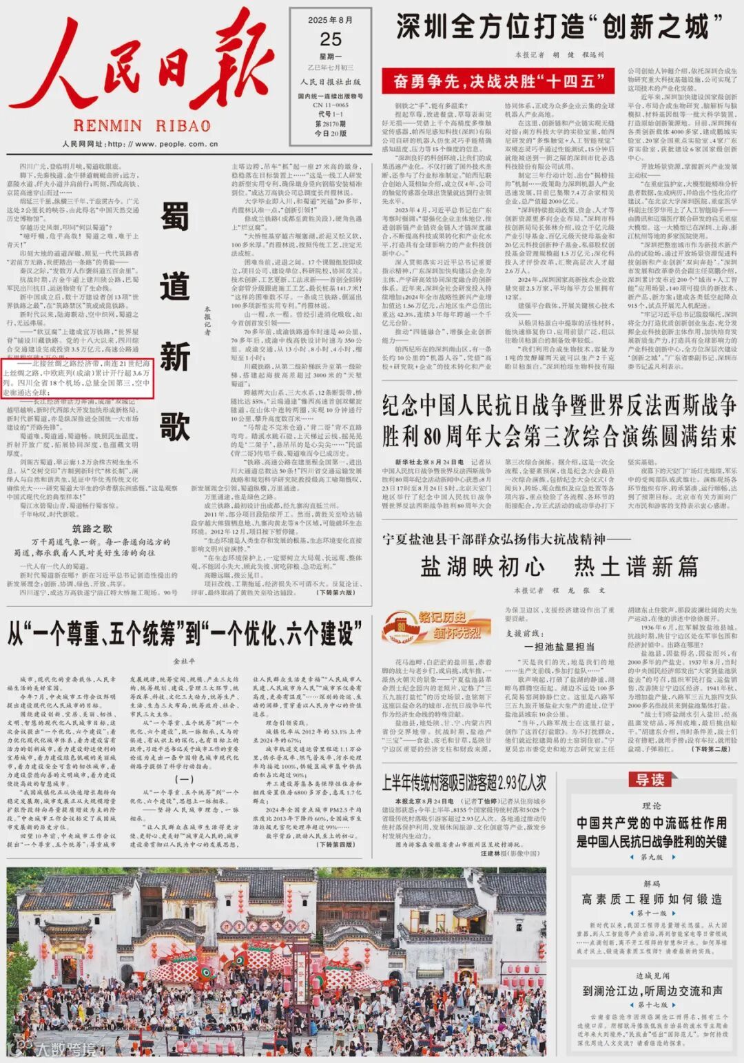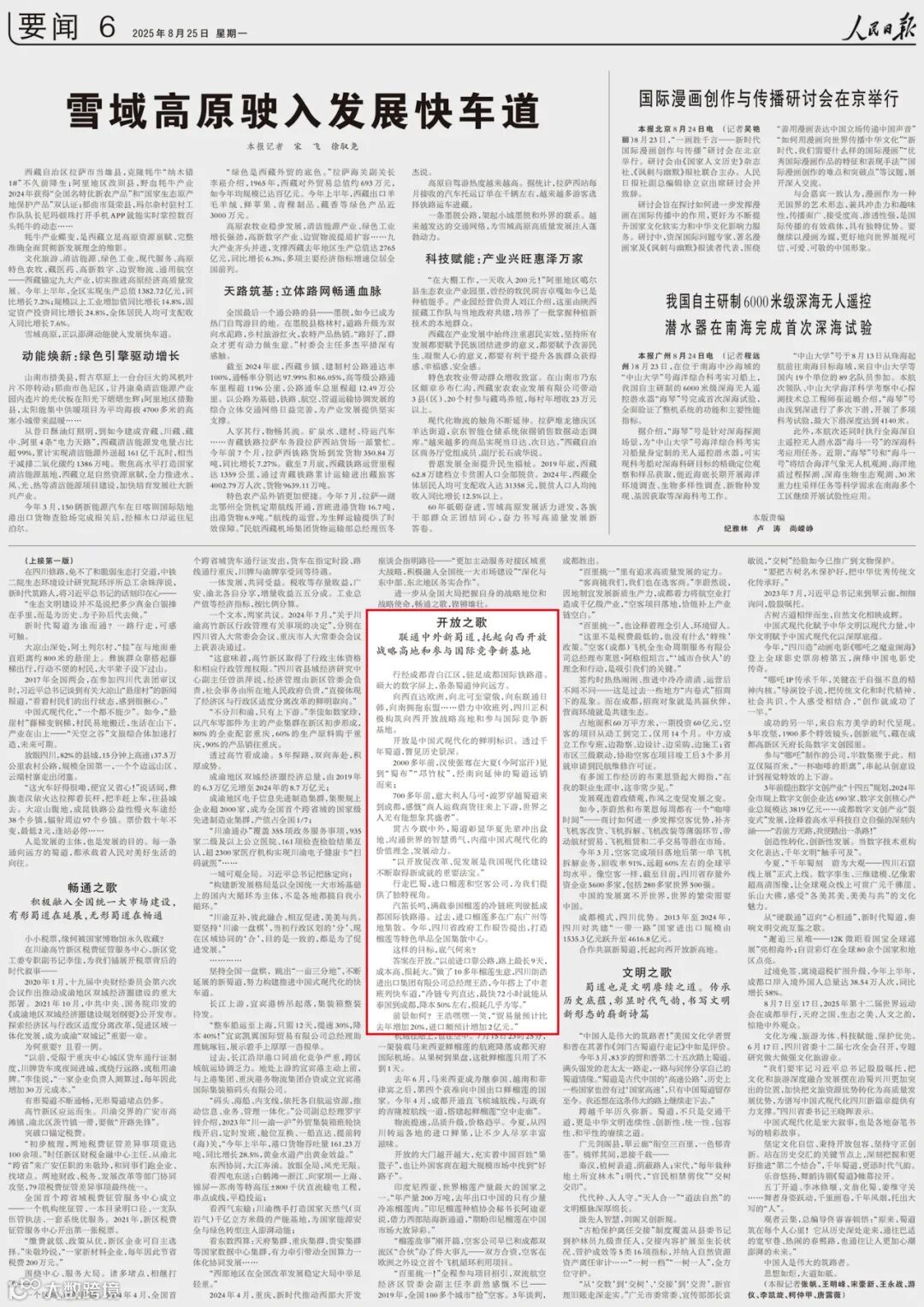 人民日报头版以《蜀道新歌》为题